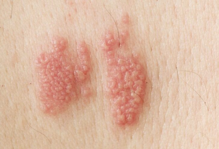 Tidlige tegn er ubehag i huden: prikking, svie, ømhet og smerte i et avgrenset område. I løpet av få dager kommer røde prikker som blir til blemmer fylt med væske. Blemmene kan bli pussfylte. Skorper dannes som regel etter 7-10 dager, og utslettet roer seg gradvis over 2-4 uker. Smerter kan være milde til intense. Hos noen varer de lenge etter at huden er helet.
